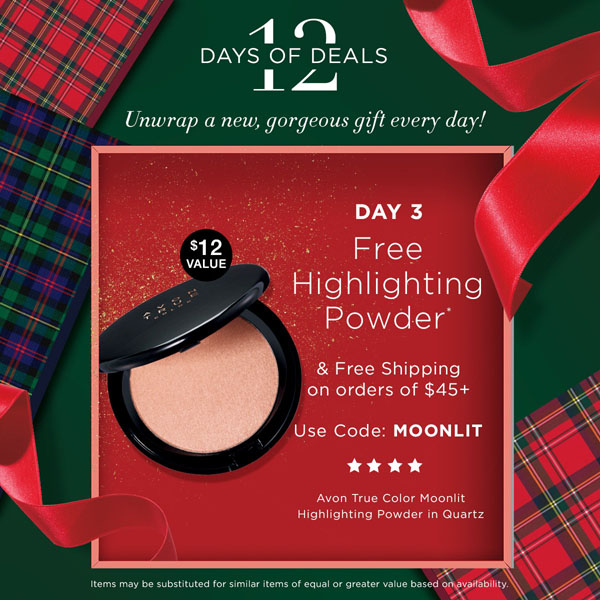 Free Standard Shipping is valid in the 48 contiguous United States on purchases of $60 or more. No coupon code is required. Additional surcharges will be applied to orders going to Alaska and Hawaii. Please note, Avon does not ship Internationally or to the Islands. Eligible customers must select the Standard Shipping option during checkout in order to receive free shipping. Offer cannot be applied to expedited shipping methods. Taxes do not qualify toward the minimum purchase requirement. Offer is non transferable and subject to change without notice